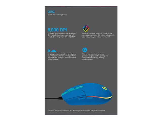 Logitech Gaming Mouse G102 LIGHTSYNC - Hiiri - oikeakätinen - optinen - 6 painiketta - langallinen - USB - sininen