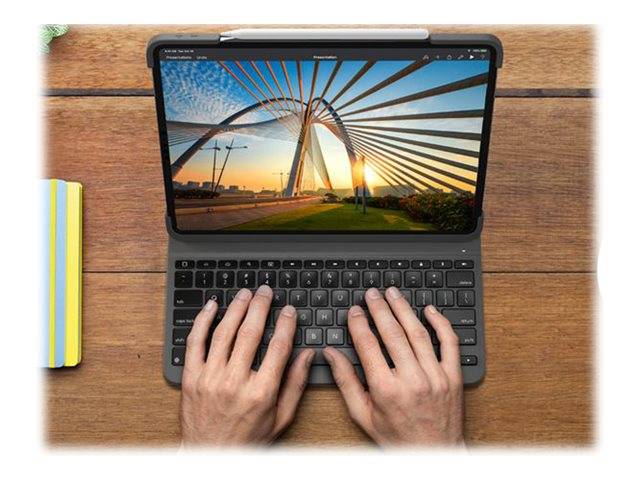 Logitech Slim Folio Pro - Näppäimistö- ja kalvokotelo - taustavalaistu - langaton - Bluetooth LE - QWERTY - Pohjoismaat malleihin Apple 11-inch iPad Pro (1. laitesukupolvi, 2. sukupolvi)