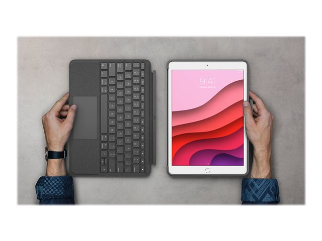 Logitech Combo Touch - Näppäimistö- ja kalvokotelo - sekä kosketuslevy - taustavalaistu - Apple Smart connector - QWERTY - espanjalainen - grafiitti malleihin Apple 10.2-inch iPad (7. sukupolvi, 8. sukupolvi, 9. sukupolvi) 920-009627