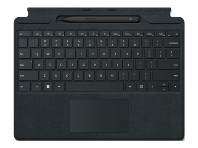 Microsoft Surface Pro Signature Keyboard - Näppäimistö - sekä kiihtyvyysmittari, kosketuslevy, Surface Slim Pen 2:n tallennus- ja latausalusta - QWERTY - Kansainvälinen englanti - musta - sekä Slim Pen 2 malleihin Surface Pro 8, Pro 8 for Business, Pro 9, Pro 9 for Business, Pro X, Pro X for Business 8X8-00007
