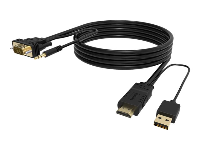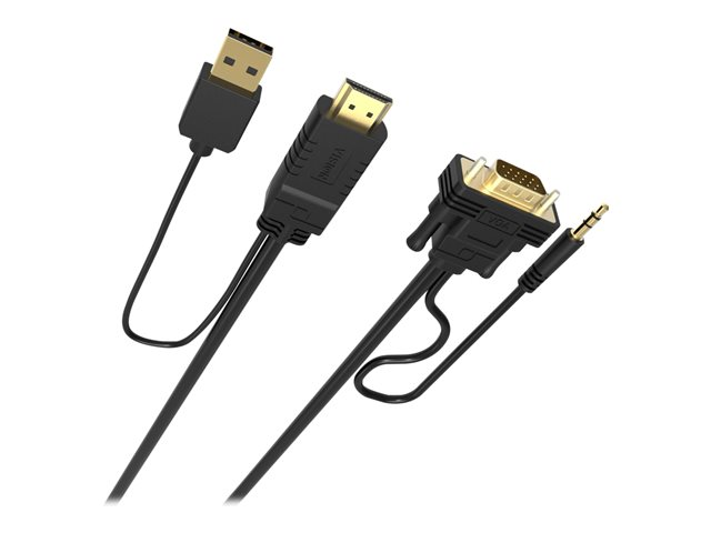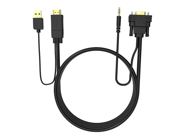 VISION Techconnect - Video-/audiokaapeli - HDMI, USB (vain virta) uros to HD-15 (VGA), mini-phone stereo 3.5 mm uros - 2 m - musta - USB-virta