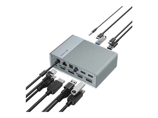 | Ominaisuudet | Kolmen näytön tuki, 100 W:n virransyöttö, HDR-tuki, MST (multi-stream transport), QC3.0 Quick Charge |