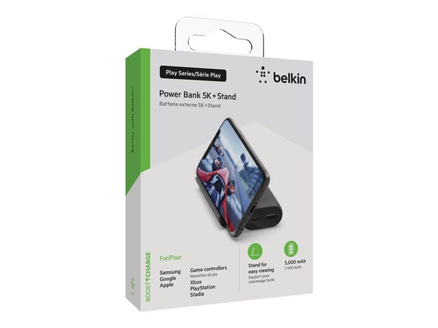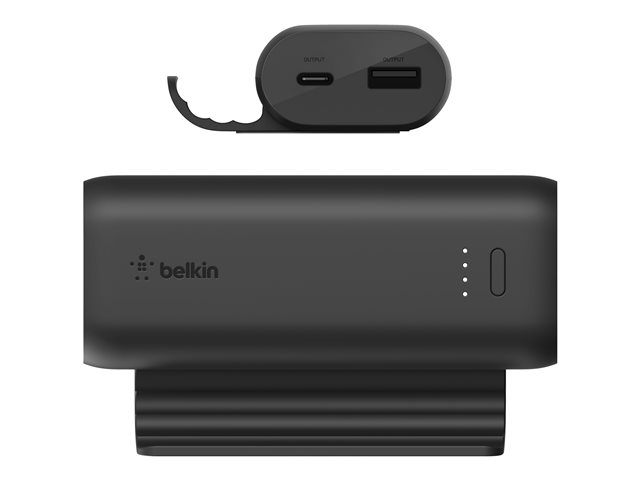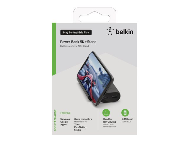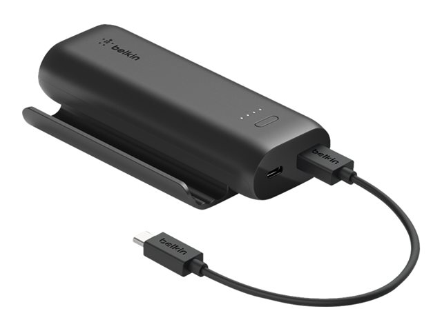 Belkin BoostCharge - Play Series - virtapankki - 5000 mAh - 12 watti(a) - 2 lähtöliittimet (USB, 24 pin USB-C) - johdossa: USB-C - musta BPZ001BTBK
