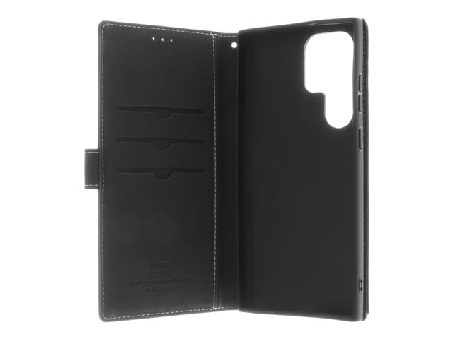 Insmat Exclusive - Läppäkansi matkapuhelimelle - aito nahka, paperi, polyuretaani, pahvi, puuvilla, alumiinifolio, pronssi, termoplastinen polyuretaani (TPU) - musta malleihin Samsung Galaxy S23 Ultra 650-3137
