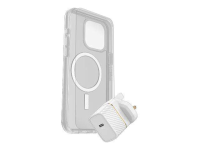 OtterBox Symmetry Series - Takakansi matkapuhelimelle - MagSafe-yhteensopiva - kirkas - sekä premium lasinen näytönsuoja ja Fast Charge seinälaturi USB-C 30 W malleihin Apple iPhone 15 Pro Max
