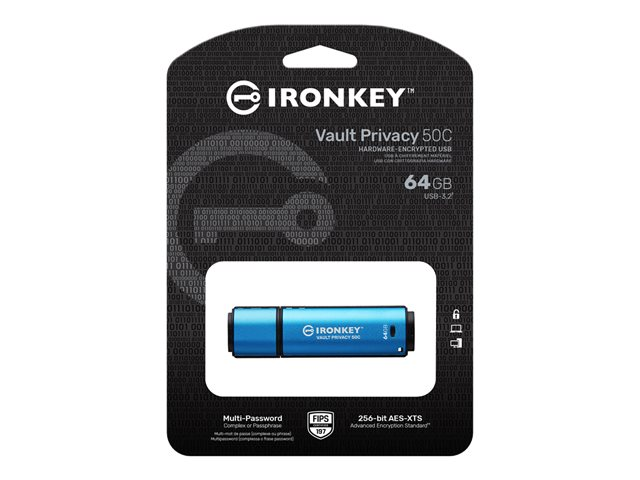 Kingston IronKey Vault Privacy 50C - USB Flash-asema - salattu - 64 Gt - USB-C 3.2 Gen 1 - TAA-yhteensopiva