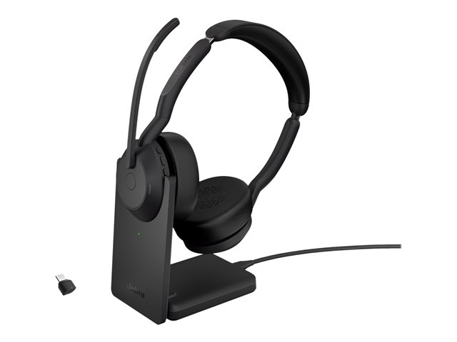 Jabra Evolve2 55 UC Stereo - Kuulokkeet + mikrofoni - korvien päällä - Bluetooth - langaton - aktiivinen melunpoisto - USB-C - musta - sekä latausalusta - Zoom-sertifioitu, Cisco Webex Certified, Optimoitu Microsoft Teamsille, Alcatel-Lucent -sertifioitu, Avaya-sertifioitu, Unify-sertifioitu, MFi-sertifioitu, Amazon Chime -sertifioitu