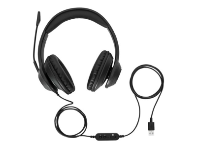 Targus AEH102GL - Kuulokkeet + mikrofoni - korvien päällä - muunneltava - langallinen - USB-A - melua vaimentava - musta