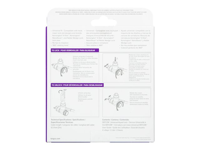 Targus DEFCON Ultimate - Turvakaapelilukko - yleisavaimellinen sovitettavalla lukkopäällä - hopea - 2 m