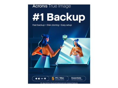 Acronis True Image Essential - Tilauslisenssi (1 vuosi) - 5 tietokonetta, rajaton määrä mobiililaitteita - lataus - Win, Mac, Android, iOS