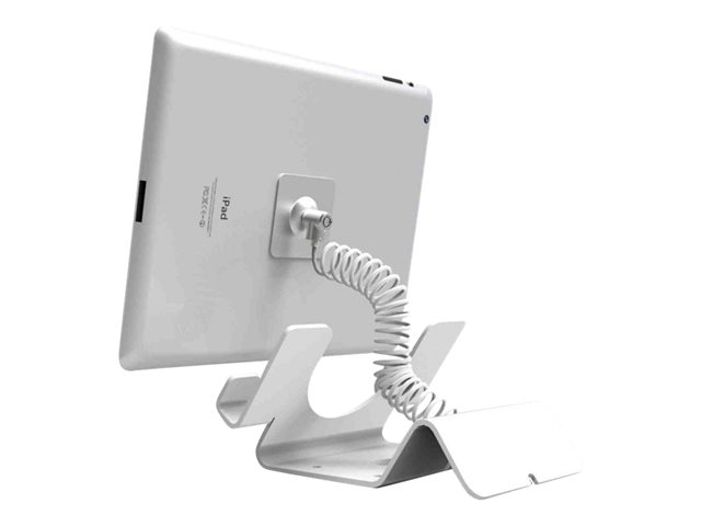 Compulocks Universal Tablet Holder with Coiled Cable Lock - Teline malleihin tabletti - lukittava - korkealaatuinen alumiini - valkoinen - työpöytä