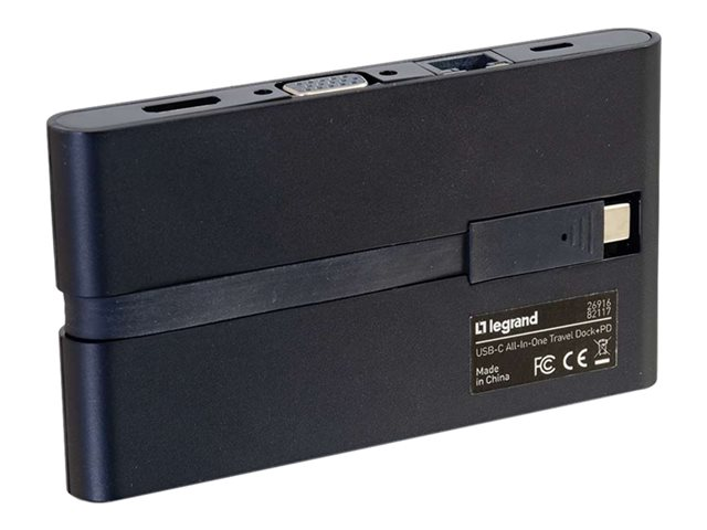 Legrand USB-C All-in-One Travel Dock with 4K HDMI, VGA, Ethernet, USB, SD Card Reader and Power Delivery - Telakointiasema - USB-C 3.1 / Thunderbolt 3 - VGA, HDMI - 1GbE 82117