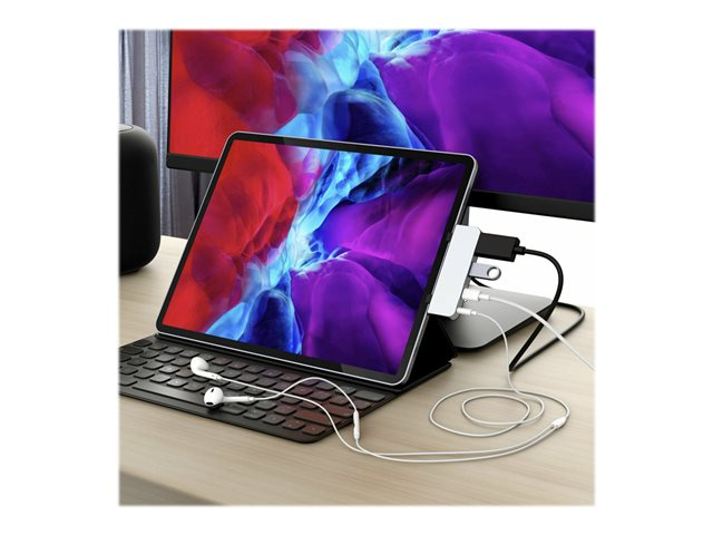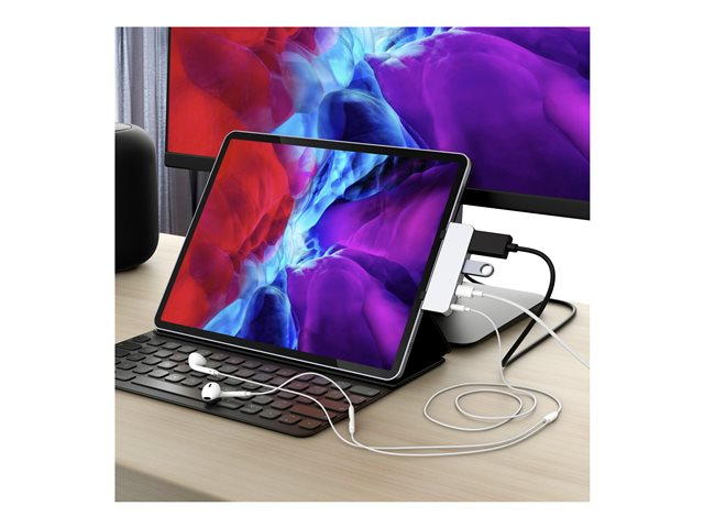 HyperDrive 4-in-1 Hub - Telakointiasema - USB-C - HDMI malleihin Apple 10.9-inch iPad Air; 11-inch iPad Pro; 12.9-inch iPad Pro; iPad mini (6. sukupolvi) HD319E-SILVER