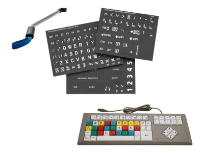 Pakkauksen sisältöPistekirjoitus- ja kosketustarraetiketit, pääsykahva, BigKeys LX -näppäimistö