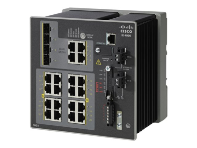 Cisco Industrial Ethernet 4000 Series - Kytkin - Hallinnoitu - 8 x 10/100/1000 + 8 x 10/100/1000 (PoE+) + 4 x combo Gigabit SFP - DIN-kiskoon kiinnitettävä - PoE+ - DC power - TAA-yhteensopiva IE-4000-8GT8GP4G-E