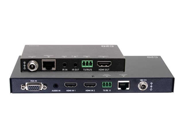 C2G Dual 4K HDMI HDBaseT + VGA, 3.5mm, and RS232 over Cat Switching Extender Box Transmitter to Ultra-Slim Box Receiver - 4K 60Hz - Laajennin video/audio/sarja - lähetin - HDBaseT, HDMI - kautta CAT 5e/6/6a/7 - jopa 70 m C2G30027
