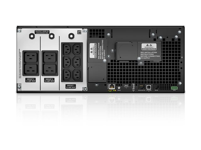 | Liitännät | 1 x hallinta (Ethernet) - RJ-45 1 x hallinta (USB) - 4 pin USB Type B 1 x EPO (emergency power off) 1 x serial - RJ-45 |