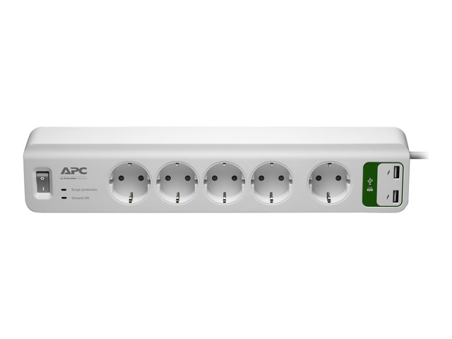 APC SurgeArrest Essential - Ylijännitesuoja - Vaihtovirta 230 V - 2300 watti(a) - lähtöliittimet: 5 - 1.83 m johto - Saksa - valkoinen PM5U-GR