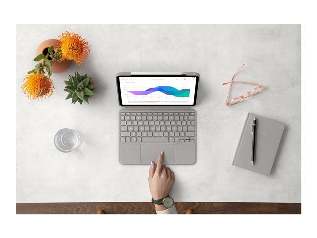 Logitech Combo Touch - Näppäimistö- ja kalvokotelo - sekä kosketuslevy - taustavalaistu - Apple Smart connector - QWERTY - espanjalainen - hiekka malleihin Apple 11-inch iPad Pro (1. laitesukupolvi, 2. sukupolvi, 3. sukupolvi)