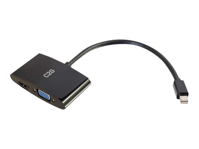 C2G 20cm Mini DisplayPort to HDMI or VGA Adapter Converter 4K UHD - Black - Näyttösovitin - Mini DisplayPort uros to HDMI, 15 pin D-Sub (DB-15) naaras - 20.3 cm - suojattu - musta - 4K-tuki