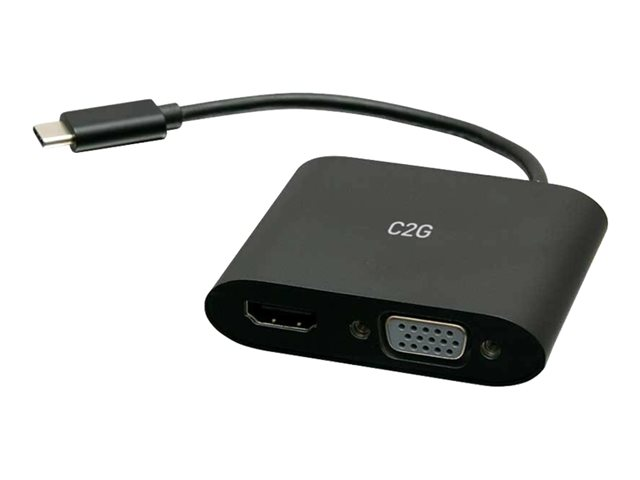 C2G USB C to HDMI & VGA Dual Monitor Adapter - 4K 30Hz - Black - Näyttösovitin - 24 pin USB-C uros to HDMI, HD-15 (VGA) naaras - musta - 4K 30 Hz -tuki