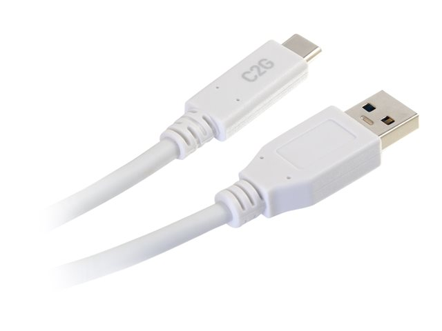 C2G 6ft USB C to USB A Cable - USB 3.2 - 5Gbps - White - M/M - USB-kaapeli - USB Type A (uros) to 24 pin USB-C (uros) - USB 3.1 - 30 V - 3 A - 1.83 m - valkoinen