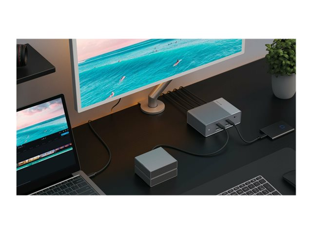 | Ominaisuudet | Kolmen näytön tuki, 100 W:n virransyöttö, HDR-tuki, MST (multi-stream transport), QC3.0 Quick Charge |