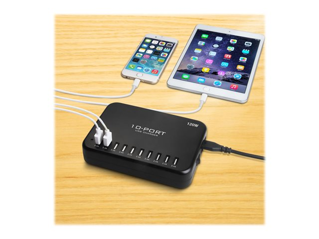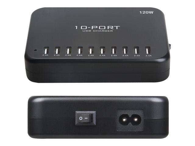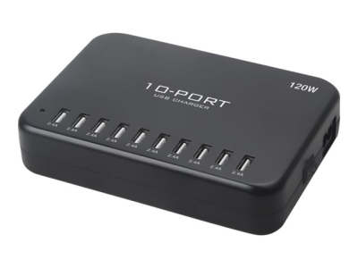 Insmat - Verkkosovitin - 120 watti(a) - 2.4 A - 10 lähtöliittimet (10 x 4 pin USB Type A) - musta 530-9120