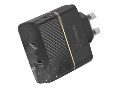 OtterBox Wall Charger - Verkkosovitin - 50 watti(a) - 3 A - PD 3.0 - 2 lähtöliittimet (24 pin USB-C) - musta hohto
