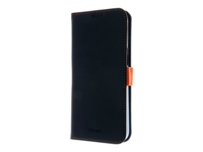Insmat Exclusive - Läppäkansi matkapuhelimelle - aito nahka, polykarbonaatti, kartonki + paperi + alumiinifolio, puuvillaompeleet - musta/oranssi malleihin Apple iPhone 15 Pro Max 650-3195