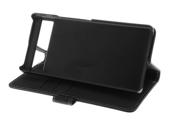 Insmat Exclusive - Läppäkansi matkapuhelimelle - nahka, polykarbonaatti, kartonki + paperi + alumiinifolio - musta malleihin Google Pixel 6a