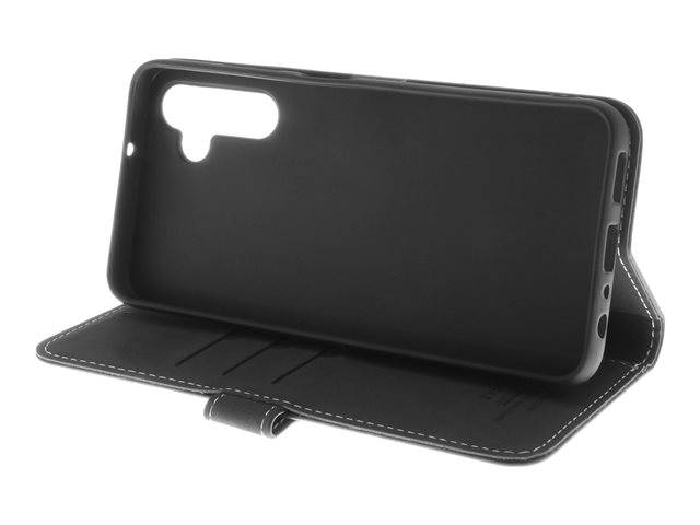 Insmat Exclusive - Läppäkansi matkapuhelimelle - nahka, kartonki + paperi + alumiinifolio, termoplastinen polyuretaanikehikko (TPU), puuvillaompeleet - musta malleihin Samsung Galaxy A25