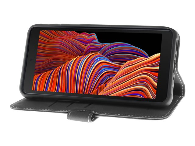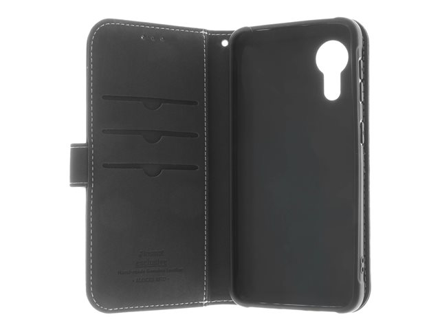Insmat Flip Case - Läppäkansi matkapuhelimelle - aito nahka, termoplastinen polyuretaani (TPU) - musta malleihin Samsung Galaxy Xcover 5