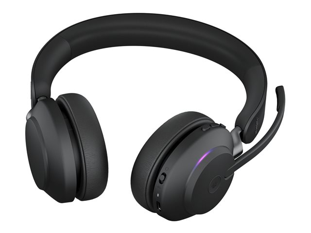Jabra Evolve2 65 MS Stereo - Kuulokkeet + mikrofoni - korvien päällä - Bluetooth - langaton - USB-C - melua vaimentava - musta - sekä latausalusta - sertifioitu Microsoft Teamsille