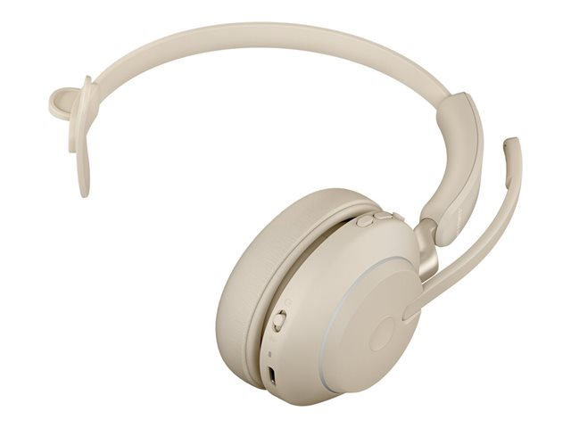 Jabra Evolve2 65 UC Mono - Kuulokkeet + mikrofoni - korvien päällä - muunneltava - Bluetooth - langaton - USB-C - melua vaimentava - beige - sekä latausalusta