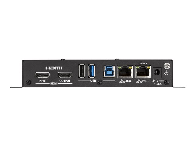 | Päätteet | (1) x HDMI-tulo - 19-nastainen HDMI A-tyyppi (1) x HDMI ulostulo - 19-nastainen HDMI A-tyyppi (1) x USB 2.0 - 4-nastainen USB tyyppi A (1) x USB 3.0 - 9 pin USB Type A (1) x USB 3.0 - 9 pin USB Type B (2) x verkko - RJ-45 (1) x infrapunalähtö - 2-nastainen päätelohko (1) x sarja - 5-nastainen päätelohko (1) x tasapainotettu äänilähtö - 5-nastainen päätelohko - stereo |