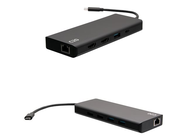 C2G USB C Docking Station - Dual Monitor Docking Station with 4K HDMI, USB, Ethernet, and AUX - Power Delivery up to 60W - Telakointiasema - USB-C / Thunderbolt 3 - 2 x HDMI - 1GbE - TAA-yhteensopiva