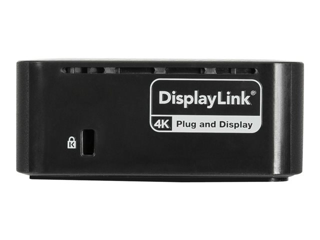 | Liitännät | 2 x näyttö / video - DisplayPort - 20 nastan näyttöporttiliitin 2 x näyttö / video - HDMI - 19 nastan HDMI Tyyppi A 4 x USB 3.2 Gen 1 - 9 pin USB Type A 1 x USB-C 3.2 Gen 2 - 24 pin USB-C 1 x audio - kuulokkeet/mikrofoni - mini-phone 3.5 mm 1 x verkko - 10Base-T/100Base-TX/1000Base-T - RJ-45 |