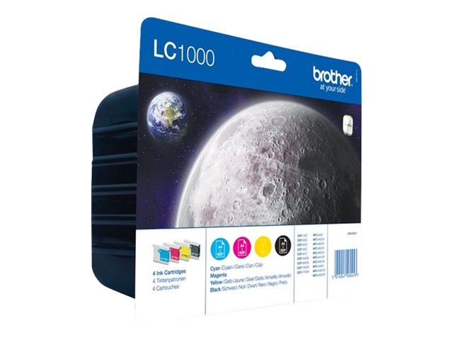 Brother LC1000 Value Pack - 4 pakettia - musta, keltainen, sinivihreä, magenta - alkuperäinen - mustepatruuna malleihin Brother DCP-330, 350, 353, 560, 750, 770, MFC-3360, 465, 5460, 5860, 660, 680, 845, 885
