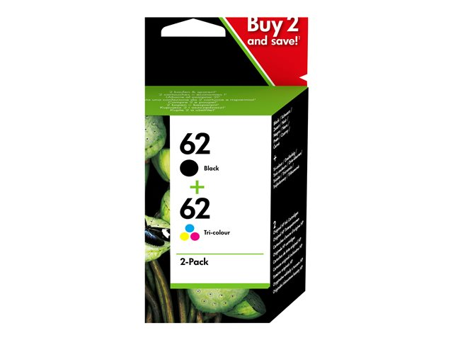 HP 62 - 2 pakettia - pigmentoitu musta, väri (sinivihreä, sinipunainen, keltainen) - alkuperäinen - musta, väri (sinivihreä, sinipunainen, keltainen) - mustepatruuna malleihin ENVY 55XX, 56XX, 76XX; Officejet 200, 250, 57XX, 8040