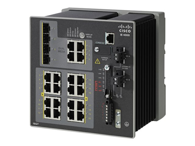 Cisco Industrial Ethernet 4000 Series - Kytkin - Hallinnoitu - 16 x 10/100/1000 + 4 x combo Gigabit SFP - DIN-kiskoon kiinnitettävä - DC power - TAA-yhteensopiva