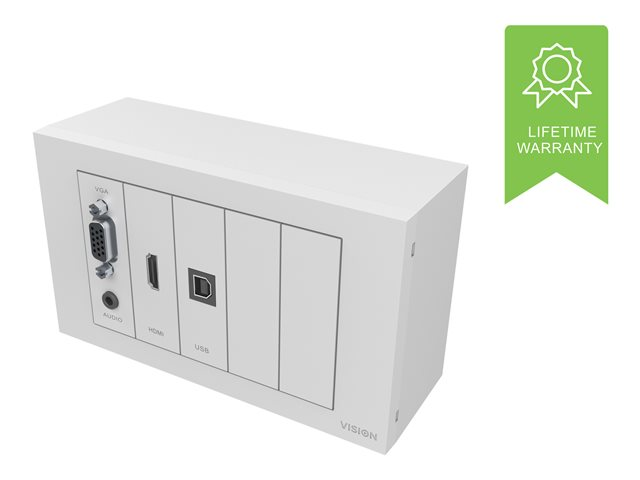 VISION TechConnect TC3 Wall-Mount Faceplate Package - Modulaarisen laitteen levysarja pikakiinnittimillä - HD-15, miniliitin: stereo, 3,5 mm, HDMI, USB Tyyppi B - mattavalkoinen